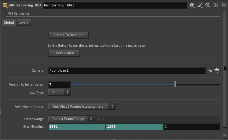 – The renders are directly sent to deadline, and the artist can choose the proper priority without needing to manually enter the parameters themselfs. The deadline job name is automatically set according to the priority of the job, the sequence/shot and the version of the render.